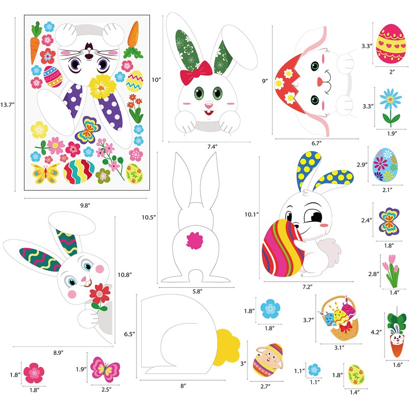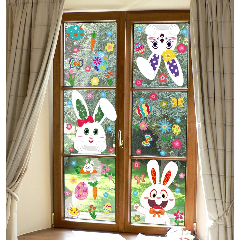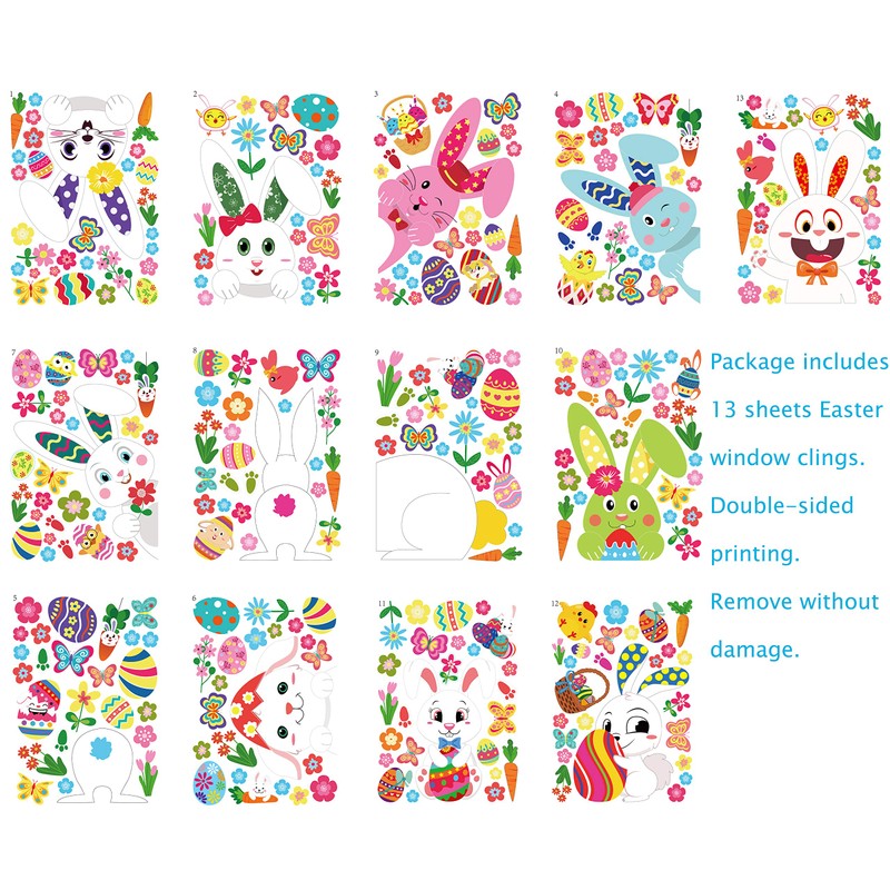 - You will get 361pcs Easter bunny window clings in 13 sheets.You can decorate it as picture shows or just follow your own ideas.