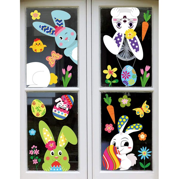 361PCS Easter Bunny Window Cling Decorations - Egg Hunt Games Decals Home Party Ornaments