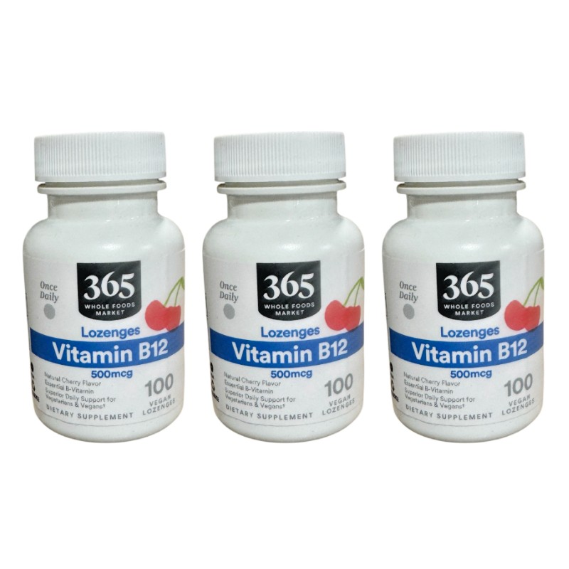 365 3-Pack 365 By Whole Foods 500mcg Cherry Flavor Vegan B12 Lozenges 100 Count Each