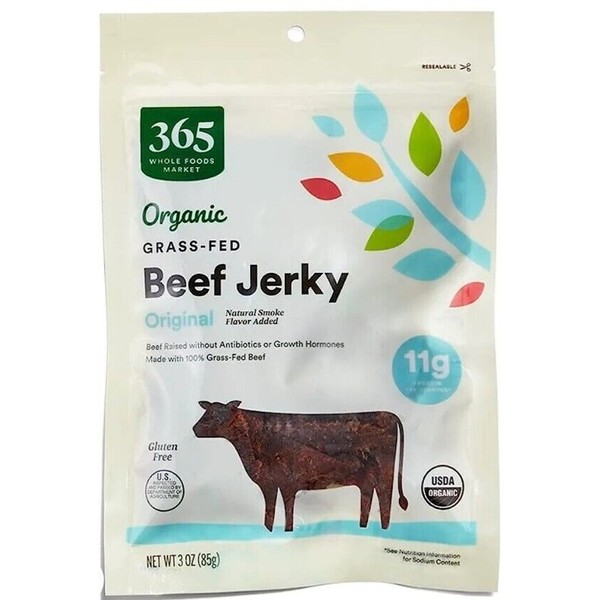 Enjoy a delicious and organic snack with 365 Organic Grass Fed Beef Jerky.