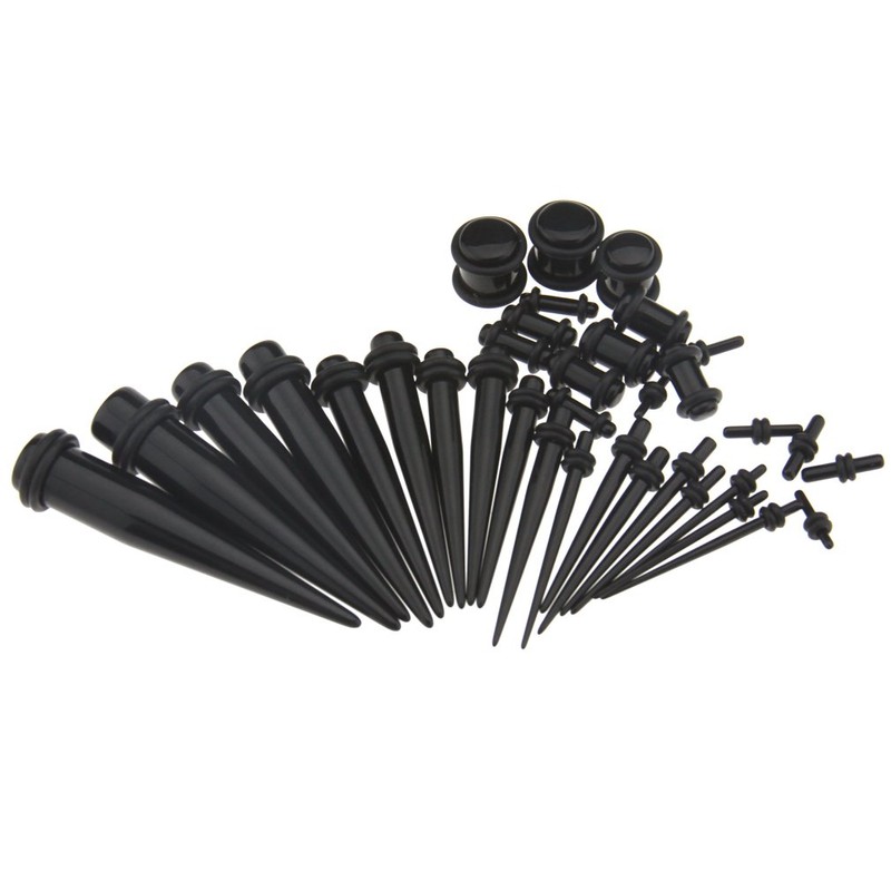 36pcs Black Acrylic Ear Plugs Expander Kit Taper Stretcher Gauges Stretching