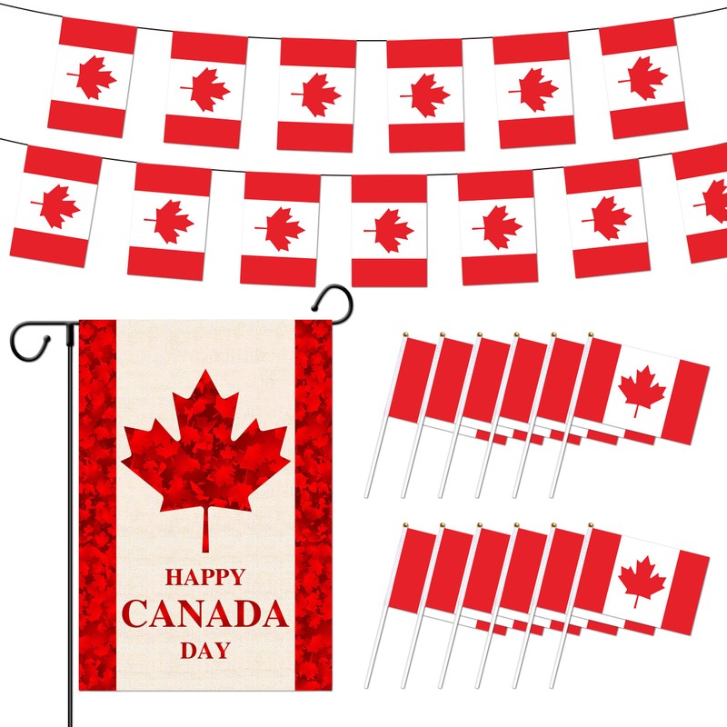 36Pcs Canada Day Flags Sets, Include Canada Garden Flag String Flags Hand Waving Flags, Canada Day Outdoor Decorations Mini Canada Flag Canada Bunting Flag Banner for Party Parade