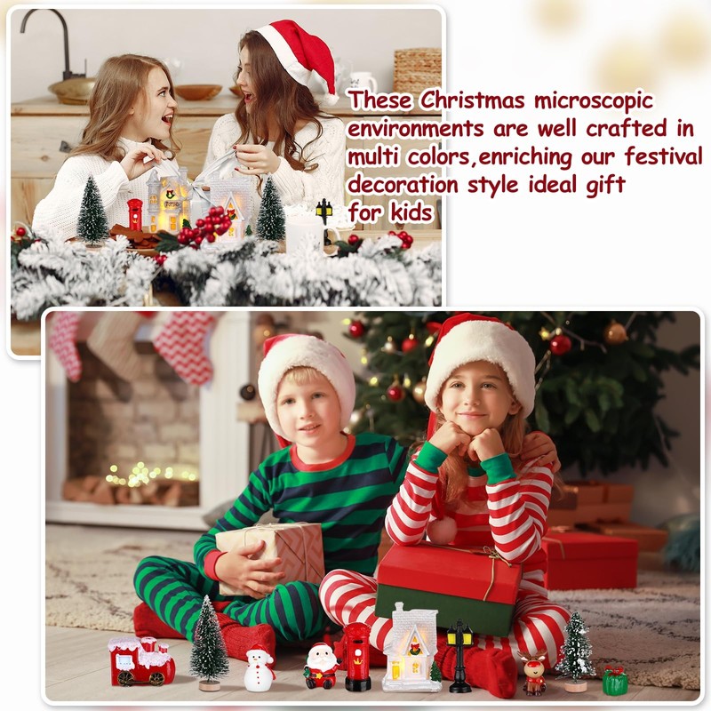 - VALUE PACKAGE: you will receive 36 Pcs of Christmas village accessories,including 6 LED light white Christmas village houses,10 Christmas trees,5 street lights,2 elks,2 snowmen,2 Christmas gifts,2 Train,1sleigh,1 mailbox ornament,1 bell,1 Santa Claus,1 wreath ornament,1 telephone booth,1 Christmas gift bag.The nice combination and sufficient quantities can support your decoration needs