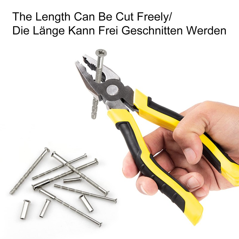 36pcs Door Handle Fixing Screws and Sleeves M3,M4 Nickel Universal Plated Connecting Bolts Sleeves, Adjustable Bolt Length, for Fixing Door Handles Keyholes Hollow Cabinets Drawers Escutcheons (60mm)