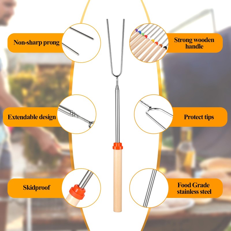 - Versatile Outdoor Tool: These extendable roasting sticks are suitable for grilling more than just marshmallows—use them to roast sausages, veggies, fish balls, and even fruits. They're a must-have for all outdoor adventures, from camping and hiking to backyard barbecue.