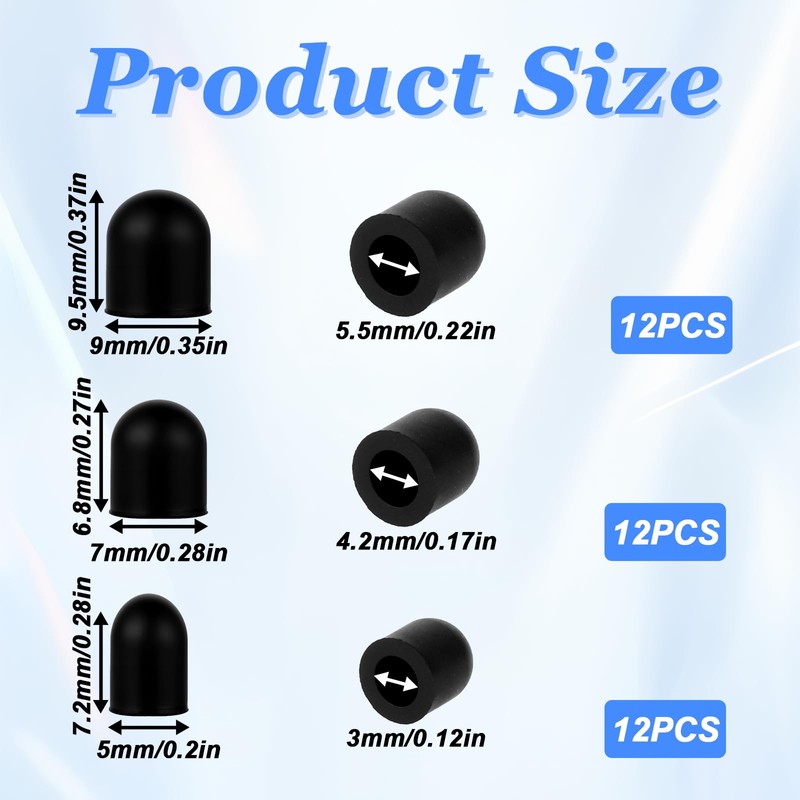 36Pcs Rubber Tips for Stylus Pens, 0.2inch/0.28inch/0.35inch Universal Replacement Nibs for Touch Screen Pen High Sensitivity and Precision Rubber Tips No Scratches