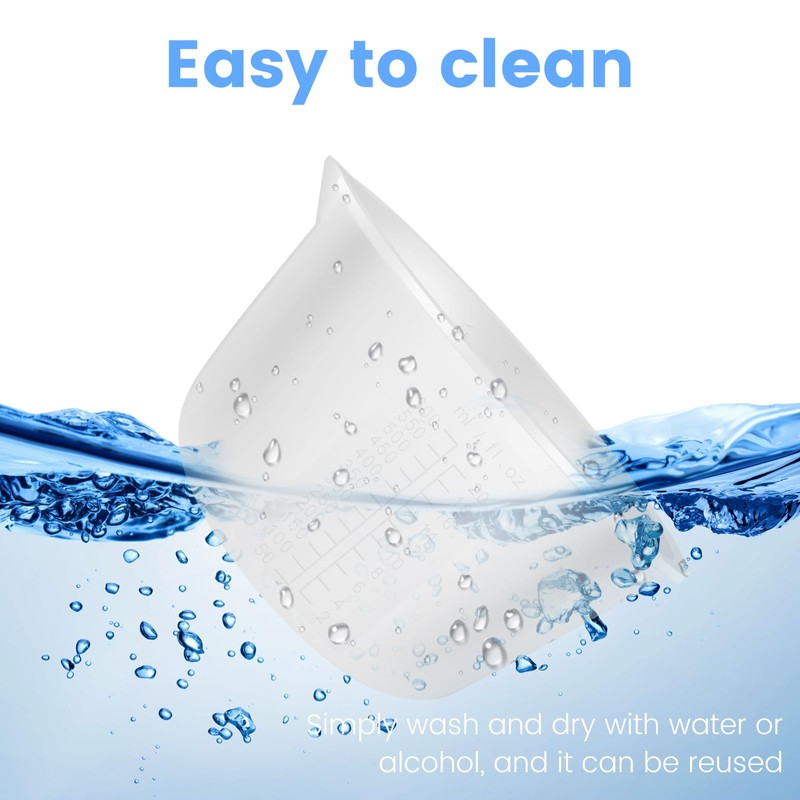 - Precise Pouring with Special Design: The measuring cup is designed with a spout and clear measuring lines, making pouring easier and more accurate. The spout effectively prevents liquid from remaining on the outer wall of the cup. It's suitable for tasks like mixing resin; DIY crafts; paint mixing; and other liquid-handling work