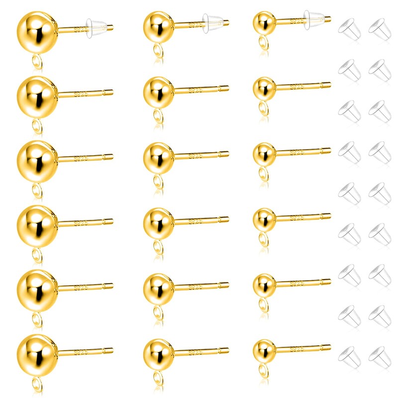 - [Earring Studs for Jewelry Making] You will get 18 pieces of S925 sterling silver ball post earring studs with loop in 3 sizes, each size of 6 pieces, and 18 pieces of clear earring backs, total of 36 pieces in this package. Sufficient quantity and classic colors to meet your daily earring making needs. You can also share them with your friends and family members without worrying about the lack or loss.
