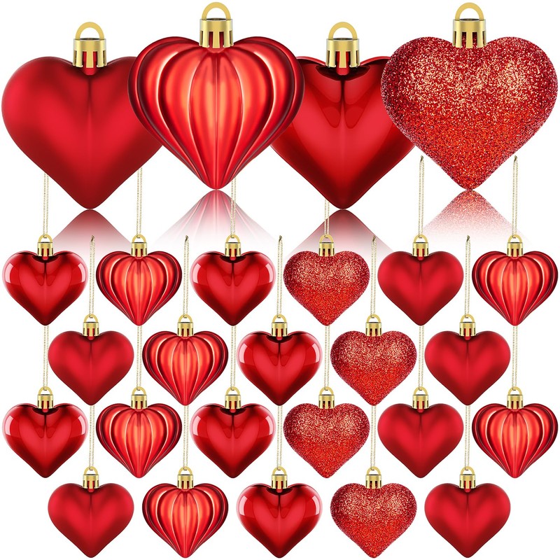 36Pcs Valentines Day Decor Heart Ornaments-red