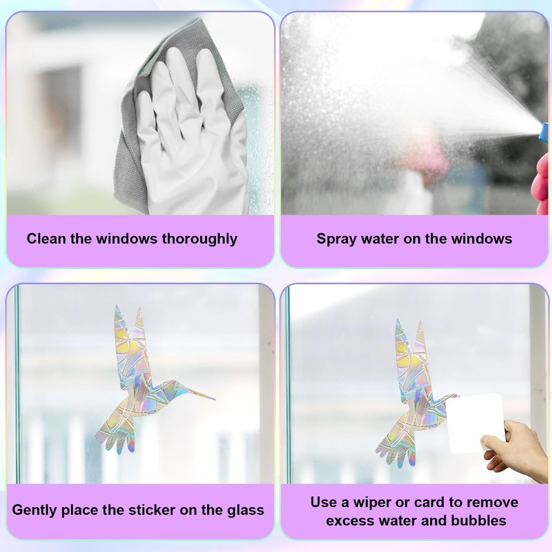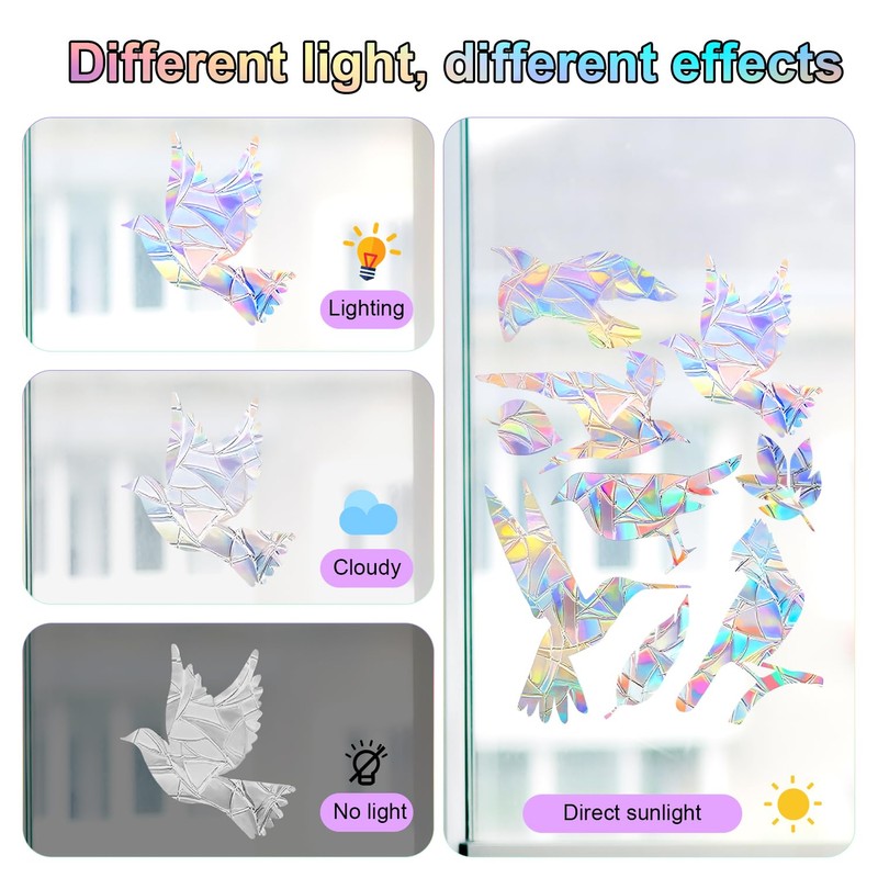 - Window Decal for Bird Strikes: These window decal to prevent bird strikes adopt rainbow sun reflective design, which can refract sunlight into gorgeous rainbow and effectively protect birds from striking the window.