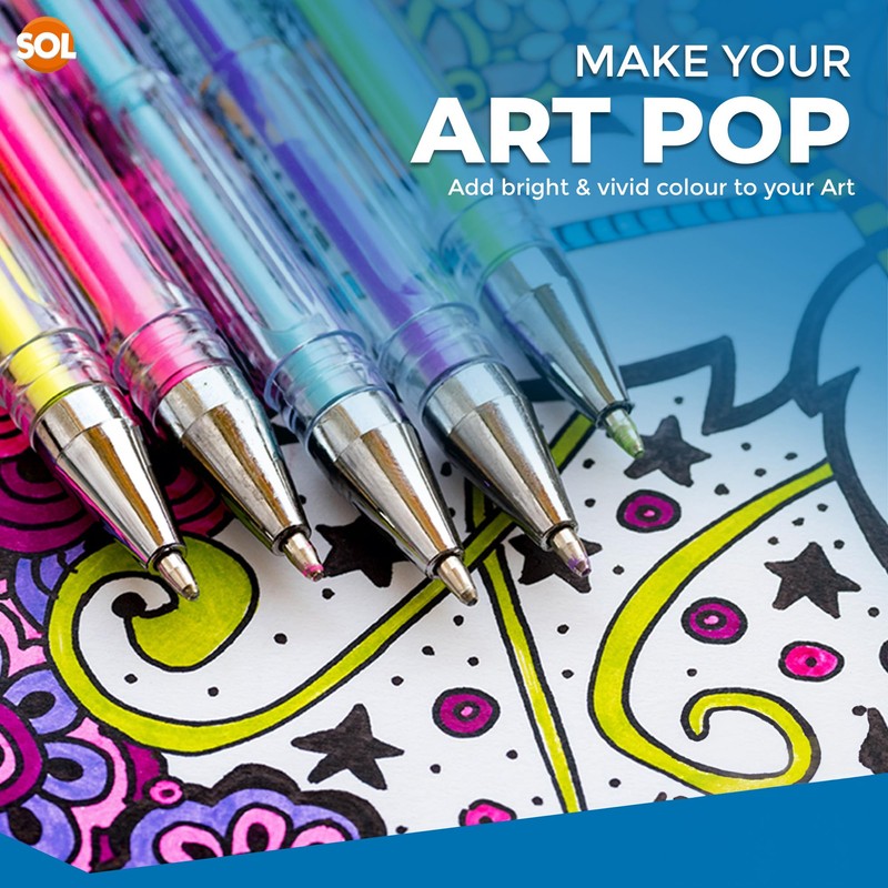 - Sketch Beautifully: Draw and sketch beautifully using these Metallic, Glitter, Neon Gel Pens. It contains lovely glittering ink that adds a beautiful and refined touch to the artwork. These can be used as gel pens for adult colouring books or kids colouring books.