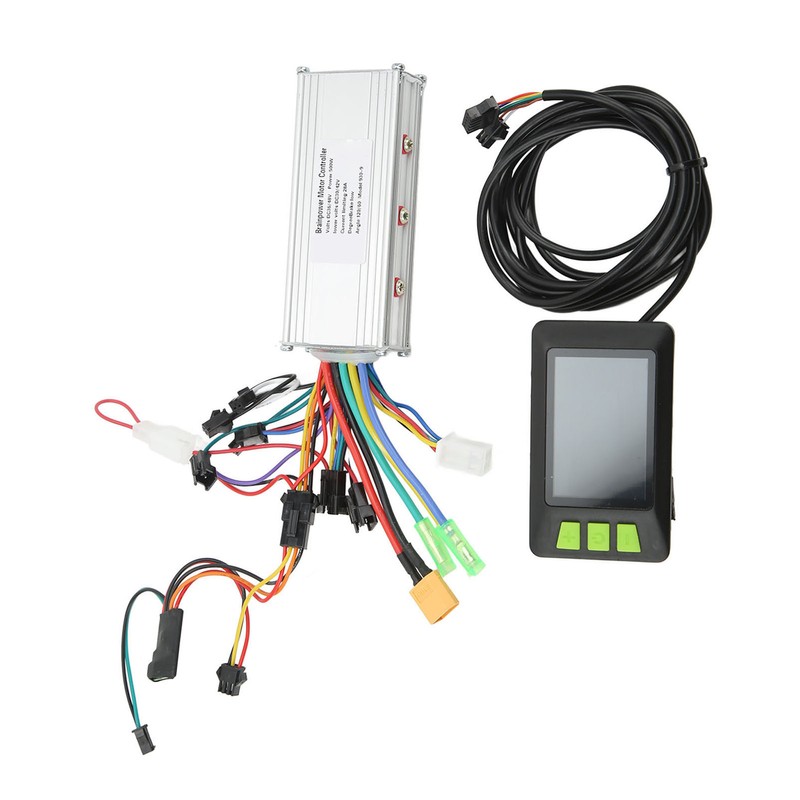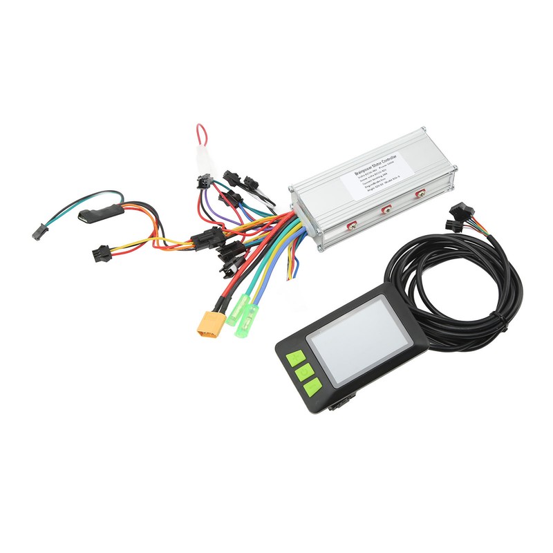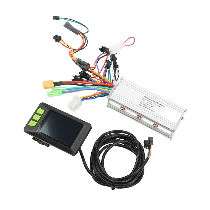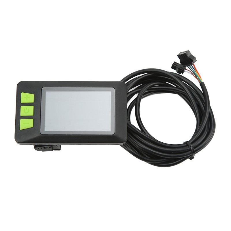 1、Multiple Display: The meter display includes single running mileage and running time, real time speed, battery power and voltage, gear indication, cumulative average speed, total mileage, cumulative maximum speed, 6km/h boost and indication, real time running power, real time running current, fault icon, etc. 2、Controller Wiring Harness Function: Contains power supply positive and negative, motor three phase line, headlight interface, tail light, brake light interface, brake light headlight signal, battery power output, intelligent identification line, low brake power off, PAS1:1 power assist, speed control throttle turner, total electric door (electric lock), LCD LCD meter interface, motor interface. 3、Heat Dissipation Function: The controller shell is made of metal, which can defend the internal circuit due to good heat dissipation function, thus avoiding thermal overload. 4、Sensitive Control: Professional electric scooter controller and LCD display panel, clearly display the status and data, and can provide stable speed, sensitive brake and direction change control, suitable for riding enthusiasts. 5、Scope of Application: Easy to install, suitable for electric bike, scooter, etc., suitable for 22.5mm diameter handlebar.