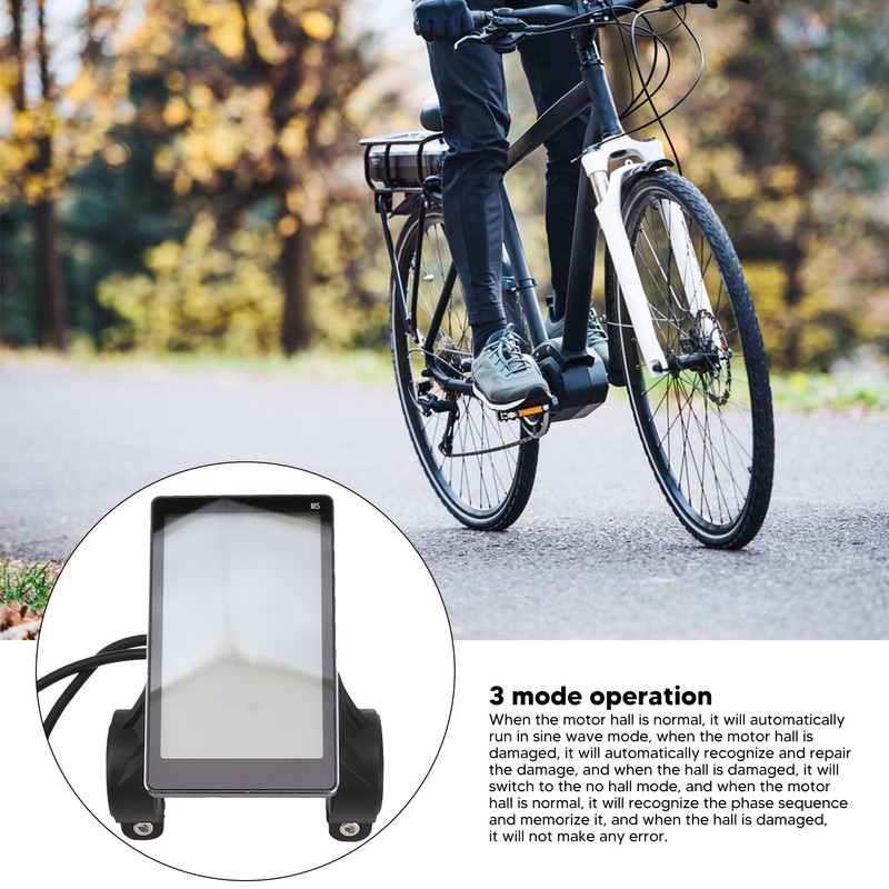 1、ABS Construction: The display panel is made of premium ABS material, ensuring lightweight, durability, and excellent resilience. It is finely crafted, providing superior protection and waterproof performance for the internal circuitry, making it highly durable. 2、Efficient Heat Dissipation: The controller's housing is made of premium metal with grooved design, facilitating efficient heat dissipation and effectively safeguarding the internal circuitry from overheating, ensuring optimal performance. 3、3 Mode Operation: This controller offers three working modes for the motors. In normal operation, the motors automatically run in sine wave mode if the motor hall is intact. If one motor hall is damaged, the system automatically detects and repairs it. If all motor halls are damaged, it switches to hall free mode, ensuring accurate phase recognition when the motor hall is in great condition. 4、Versatile Voltage and Power: Support for 36V, 48V, and 60V voltage, 1000W power, and 38A current limitation, with low voltage options of 30V, 42V, and 53V. It is suitable for enthusiasts who enjoy challenges and DIY projects in electric biking. 5、Complete Conversion Kit: This kit includes a display panel, a controller, and an instruction manual, allowing you to easily convert your electric bike or electric scooter.