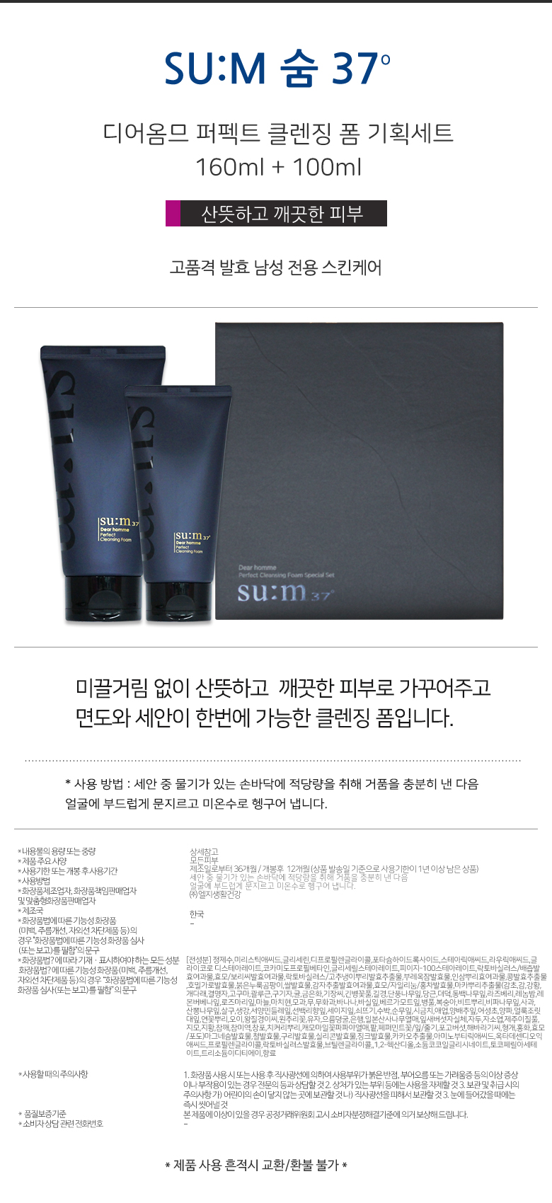 37 Dear Homme Perfect Cleansing Foam Special Set / Product 160ml + 100ml / 숨37 디어옴므 퍼펙트 클렌징 폼 기획세트 본품 160ml+100ml