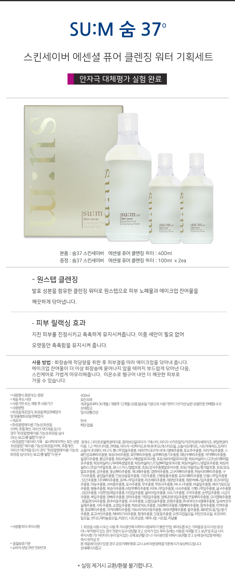 숨37도 스킨 세이버 에센셜 퓨어 클렌징 워터 증량 기획세트 본품 400ml+증정100mlx2ea">