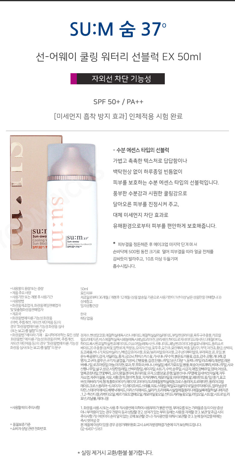 숨37도 선어웨이 쿨링 워터리 선블럭 EX 50ml SPF50+PA++