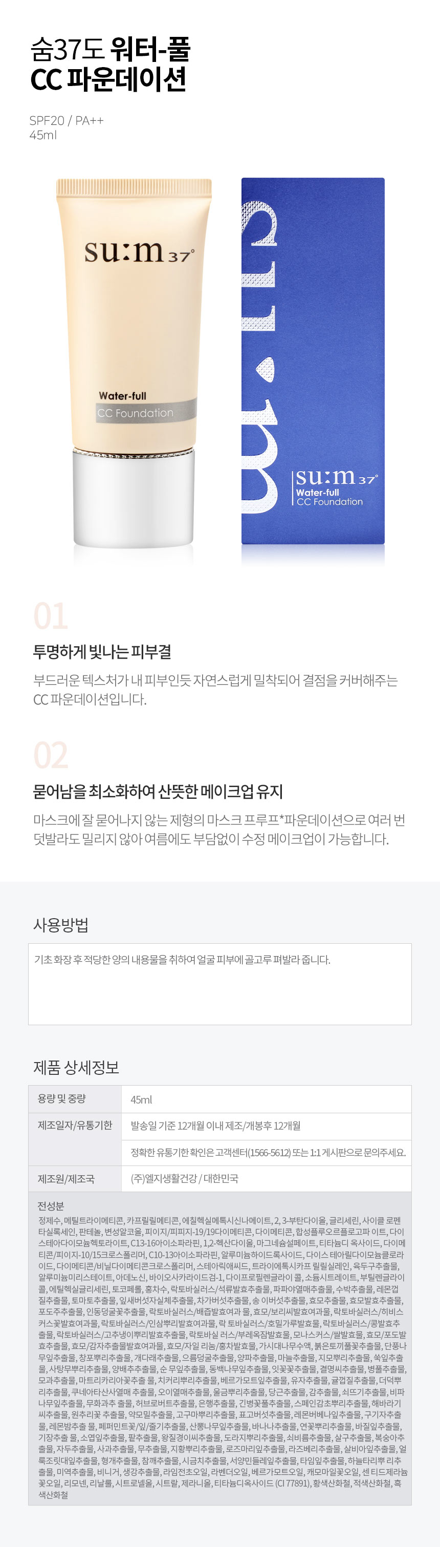 37 Degrees Water-Full CC Foundation 45ml High-Adhesion CC Cream / 숨37도 워터-풀 CC 파운데이션 45ml 고밀착 씨씨크림