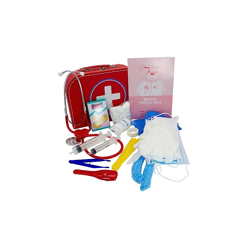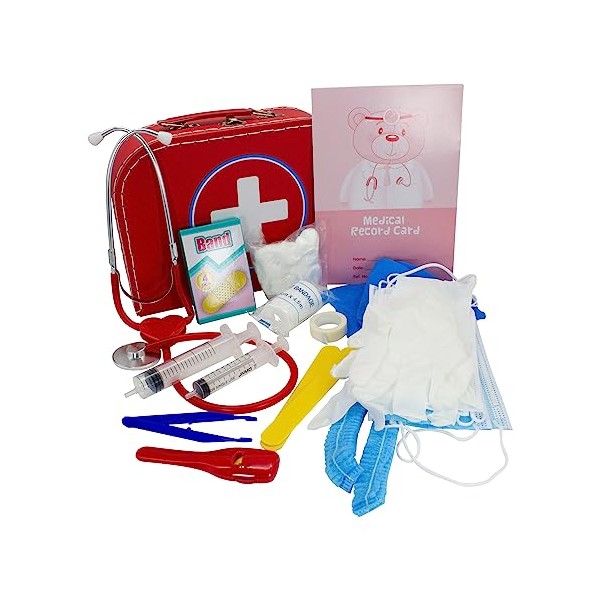 - Doctor's case: sturdy cardboard case for children, doctor's case, doctor's case with metal clasp and carry handle with 26 accessories such as hoods. Masks, syringes, bandages, plasters, scissors, thermometers, spatulas, doctor's book and much more.
