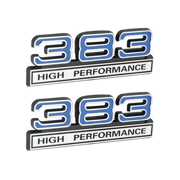 383 6.2L High Performance Engine Emblems in Chrome & Blue - 4" Long Pair