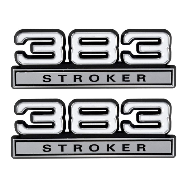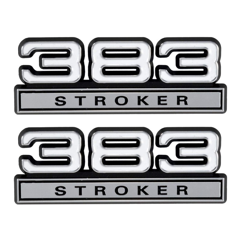 383 Stroker 6.2L Engine Emblems Badges White with Chrome Trim 4" Long Pair