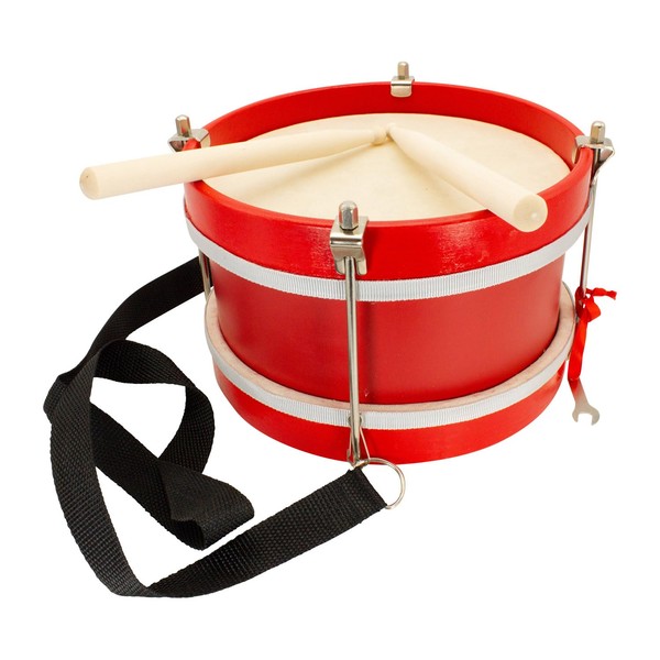 - Children's marching drum: great, sturdy wooden drum for children with carrying straps and 2 sticks. The screw connection allows you to adjust the tension of the eardrum with the socket wrench. Dimensions: diameter 22 cm, height 15 cm.