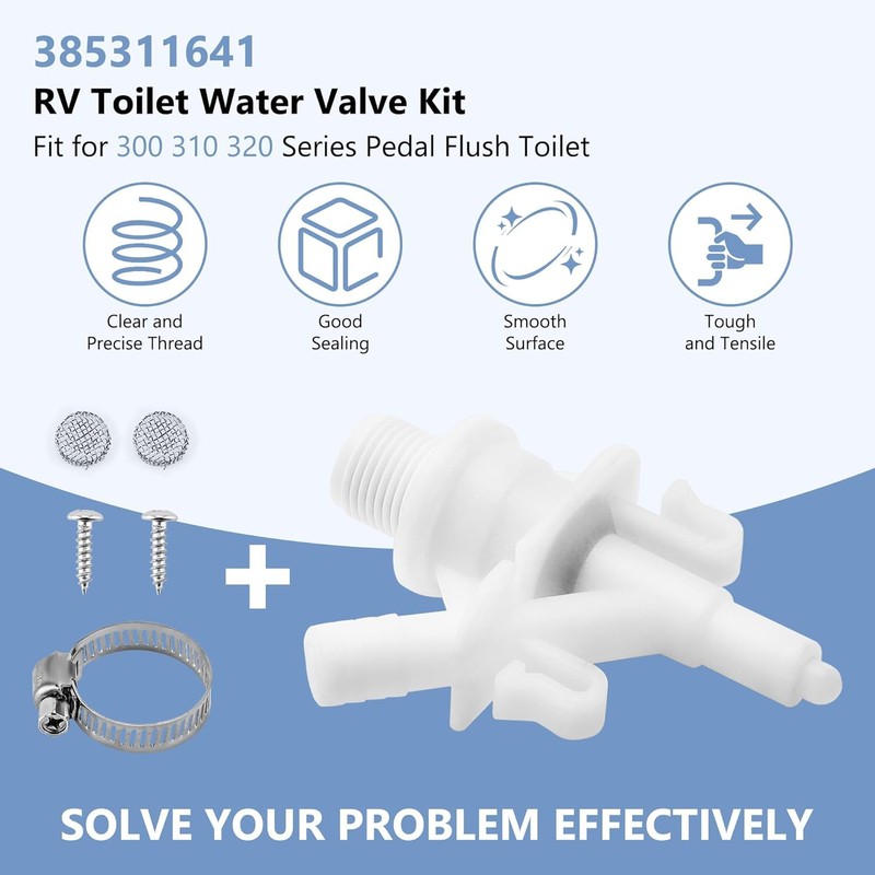 - ๐๐๐ฆ๐ฌ ๐ฅ๐๐ฃ๐๐๐๐๐ ๐๐ก๐ง & ๐ฃ๐๐ฅ๐๐๐๐ง ๐๐๐ง๏ผReplace your broken RV toilet valve with our 385311641 kit, compatible with Dometic 300, 301, 310, 311, 320, and 321 series pedal-flush toilets. This kit includes a water valve, hose clamp, screws, and stainless steel mesh filters. Designed for easy installation, it ensures a seamless fit and long-lasting performance. Not compatible with models 506+, 510+, 511 H, 547+, 548+, 706, 709, 748, 749, 806, 808, 847, 848, 1147, 1148, 2010, 2011, 5006, 5047, 5048, 5049.