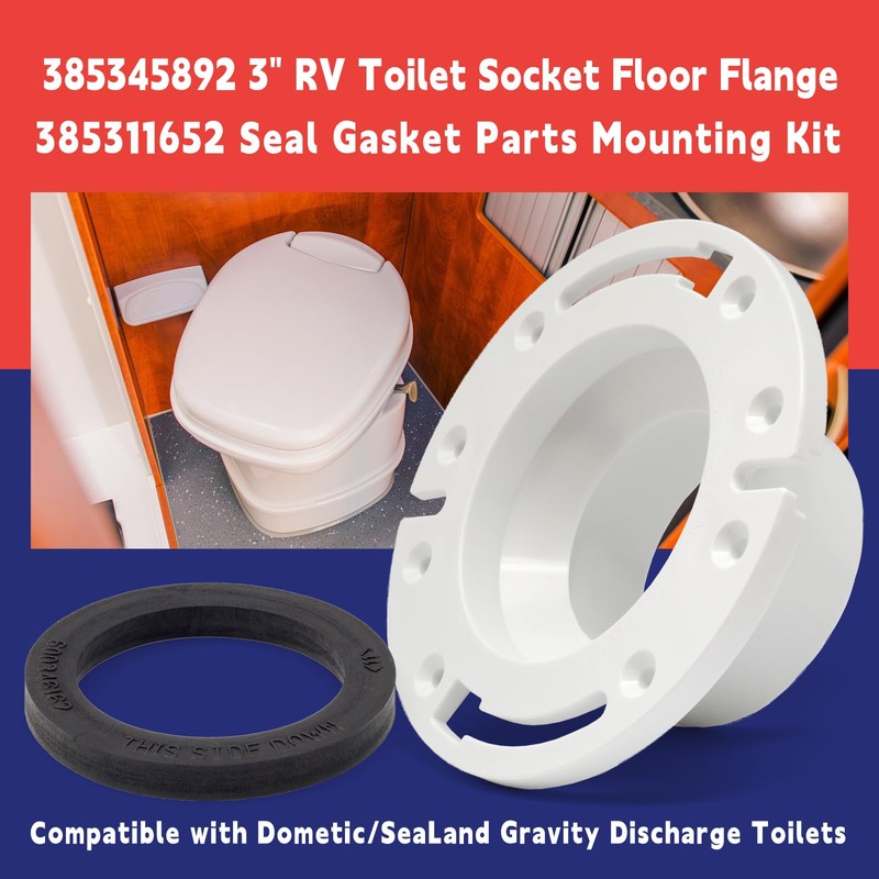 - Toilet Flange and Seal Mounting Kit: 3" RV Toilet Flange and Seal Gasket Parts Compatible with Dometic RV Motorhome and Trailer Toilets. Replace Part Number 385345892, SE345892, 385311652, 385311653.