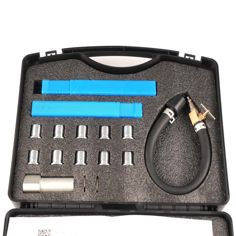 - Complete Repair Kit The kit includes 8 M14-1.25 steel alloy inserts a twist drill screw tap line up guide cylinder leak tester and snap iron pieces for a foolproof spark plug thread repair