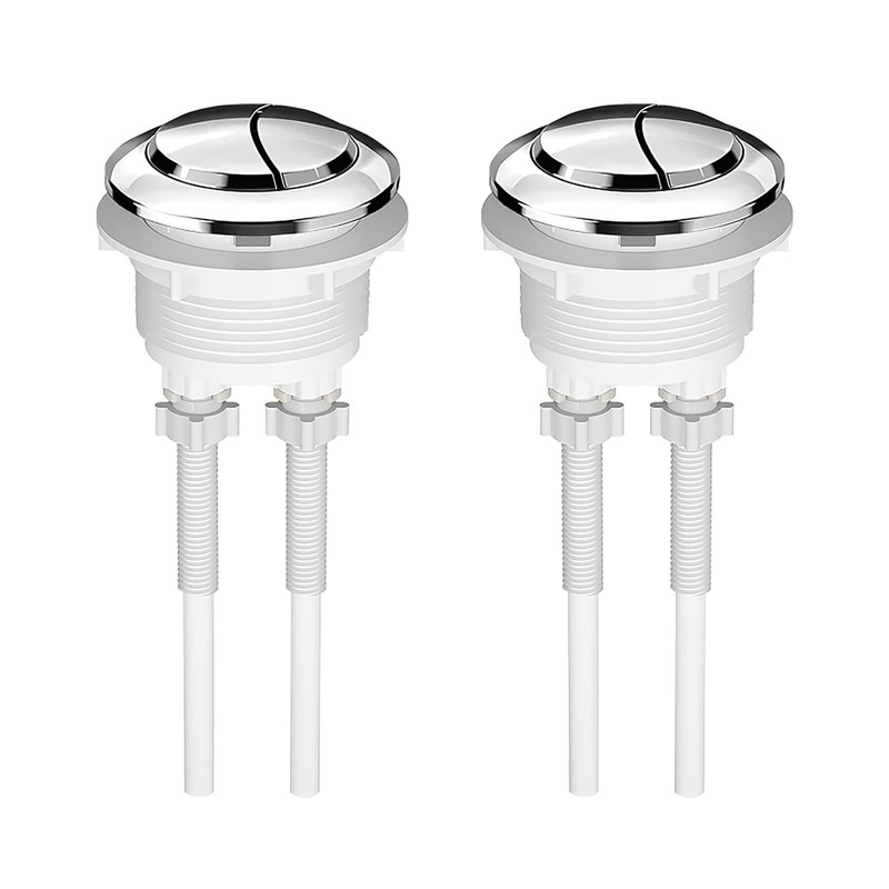 Dual Flush Button 38mm Replaceable Toilet Flush Button Chrome Plated Water Tank Push Buttons Locking Stool Accessory 2 Pack Button Size: Dual flush push button thread diameter is 38mm, button cover diameter is 47mm, and the toilet flush button is suitable for replacement in round ceramic hole diameters from 38mm to 45mm. Package includes 2 dual flush push buttons and 4 85mm rods.