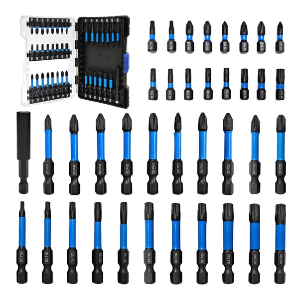38pcs Impact Driver Bit Set, Magnetic S2 Screwdriver Bit Set, Hex Key Bit Set, Phillips, Pozidriv and Torx with 1/4” Hex Shank Bits for Electric Screwdriver