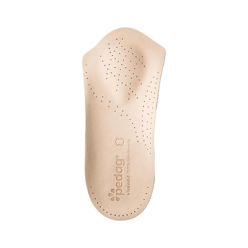 - (Toe Release) APMA certified product. Pedak signature "Viva" insole with toe-free type. The durable footbed supports horizontal arches, inner and outer vertical arches without pressure on the toes, providing support for walking. The heel pad has been designed for optimal cushioning to cushion the shock of the head when walking