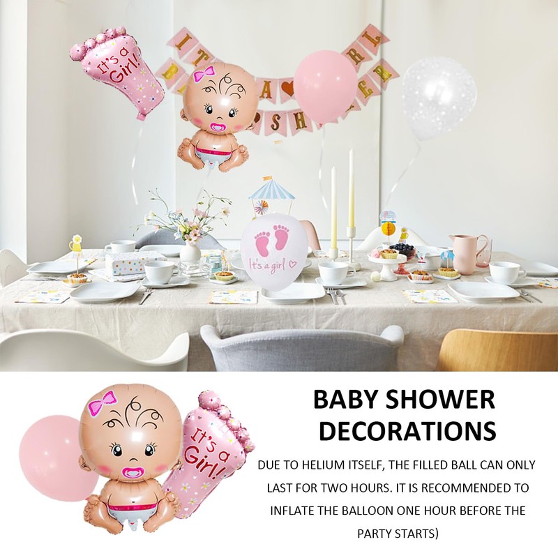 - [Product contents] You will receive 39 pieces pink baby shower balloon decoration set and 10 g pink confetti, including 1 piece baby girl pull flag, 1 piece mother shoulder strap, 1 roll balloon ribbon, 1 piece baby foot balloon, 1 piece pram balloon, 1 baby girl balloons, 1 baby bottle balloon, 1 crown balloon, 1 love balloon, 30 round 1.