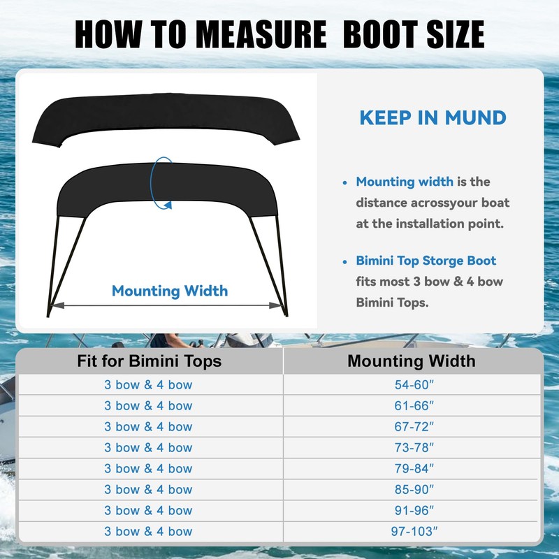 - 【Bimini cover boot】 Mionovity bimini top storage boot is crafted to fit seamlessly with most 3bow and 4bow bimini tops in the market. Effortlessly store your boat canopy with our universal fit tool. Before purchasing, we recommend checking your Bimini top size for proper compatibility.