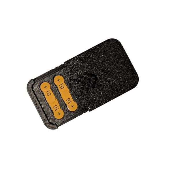 - COMPACT DESIGN: NEW SLIM DESIGN Pocket-sized hearing aid battery case with textured black finish, perfectly sized to your SIZE 10 batteries (BATTERIES NOT INCLUDED)