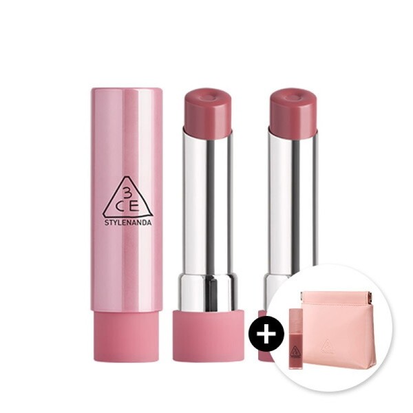 3CE Glaze Lip Glow 2ea (included) Cloudy Pink Flip Pouch + Mini Tint (
