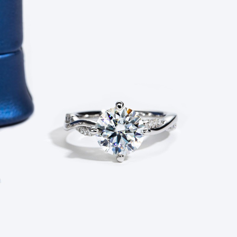 - ✦ Design ✦ This moissanite engagement ring features a 4-prong design, featuring a 3 carat /9mm D color moissanite center stone, exquisite eight hearts and arrows cut. The arms of the ring are designed to resemble twisted vines, set with 14 pcs side-stone moissanites, which enhance the light reflection of the stones. The side of the ring's basket presents a graceful heart shape. The overall design exudes a classic and unique aesthetic,symbolizing a promise meant just for her.