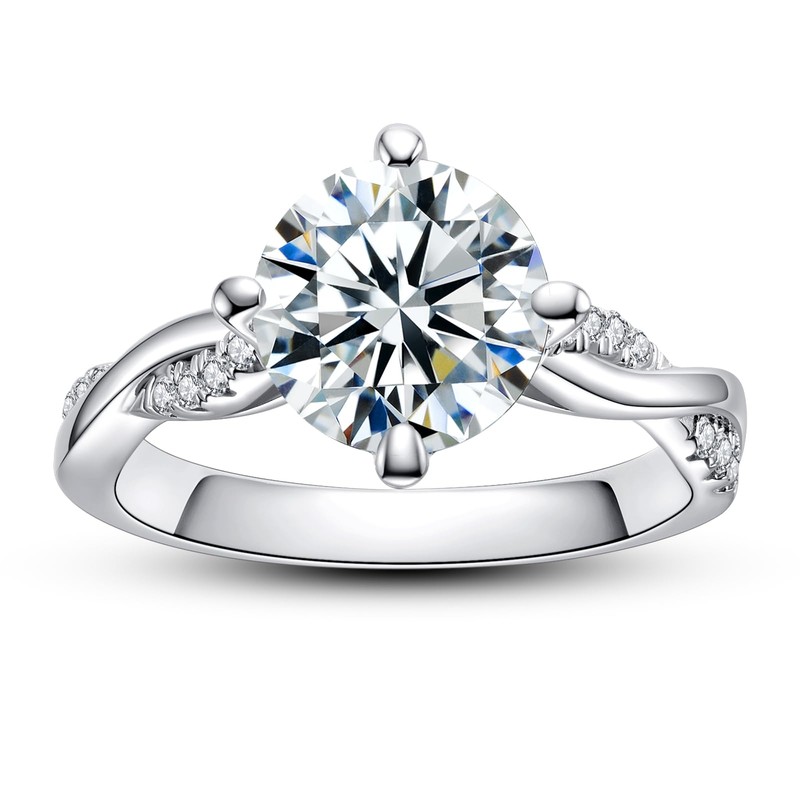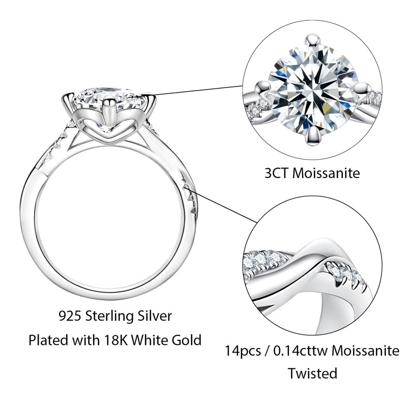 3ct Moissanite Engagement Ring D Color VVS1 Round Cut Lab Created Diamond 18K White Gold Plated 925 Sterling Silver Twisted Anniversary Wedding Promise Bridal Rings for Women (6.5)