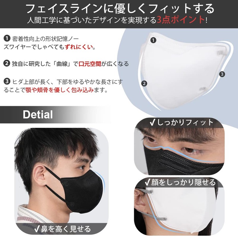 - 【立体構造·超快適防護】3D立体構造設計で、口元とマスクの間に一定の隙間を作ることにより、息がしやすくなります。高性能マスクは通気性に優れた素材を使用しているため、防御効果を保証する上、呼吸もしやすくなります。