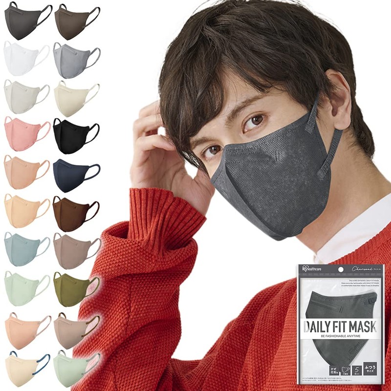 [アイリスオーヤマ] マスク 不織布 立体マスク 3Dマスク 5枚入 ふつうサイズ 立体 個包装 小顔 デイリーフィット DAILY FIT 血色マスク チークマスク カラーマスク くちばし おしゃれ 耳が痛くならない RK-F5SXR チャコール
