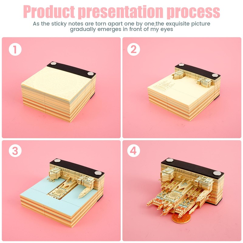 - [Add Charming Ambience] This 3D memo pad gently transports you to a magical realm, inspires creativity and adds a charming ambience to your room. Ideal for desktop decorations, office supplies and collectibles.