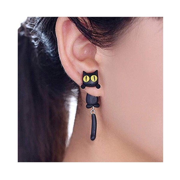 黒猫 耳飾り 耳輪 ねこ ネコ柄 猫が揺れる猫好き プレゼント3D 立体 耳飾り アクセサリー シルバー ねこジュエリー 誕生日 記念日 ねこ グッズ プレゼント (黒猫)