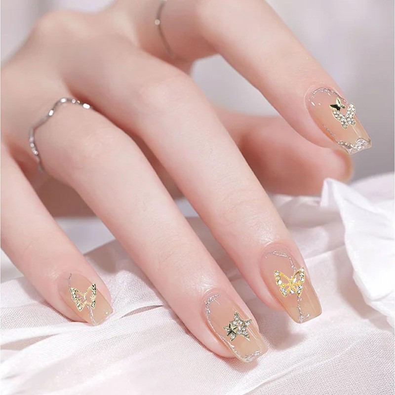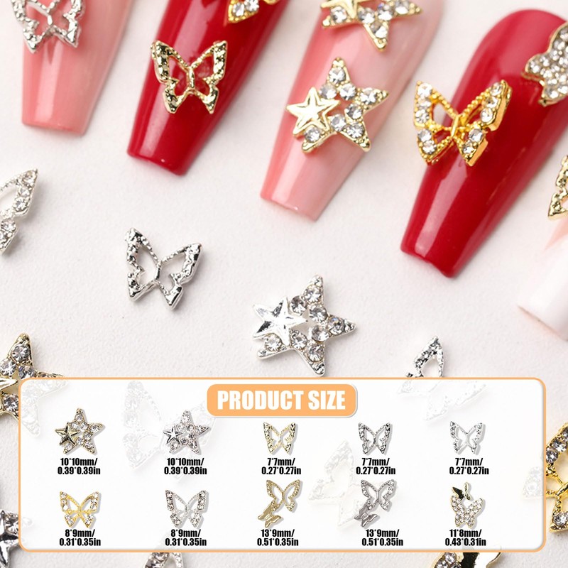 - 【Package Content】You will get 50 pieces of gold silver metal nail gems, with mixed butterfly and star patterns, sufficient for your different demands.
