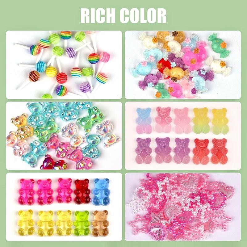 3D Charms Mix Flower Bear Bowknot Charms Gummy Star Heart Lollipop Hollow Heart Beads with Glue and Pickup Tools(18 with Glue):_8-Kit 2