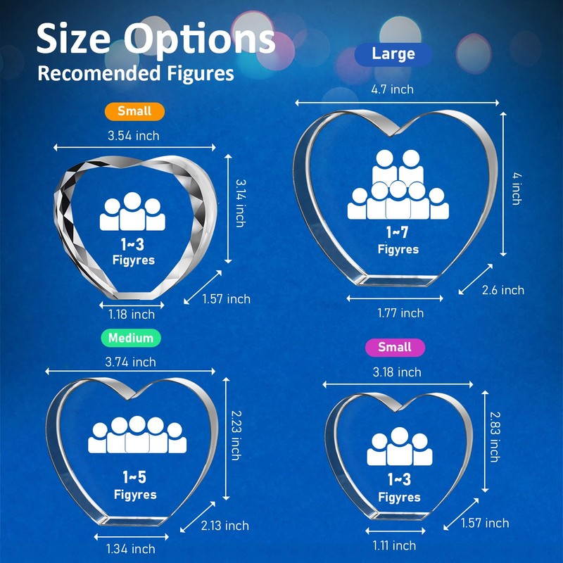 - Elegant Display: With its elegant design and compact size, the 3D Crystal Photo Heart can easily fit into any home or office decor. Whether displayed on a shelf, desk, or mantle, it adds a touch of elegance while showcasing your treasured photo.