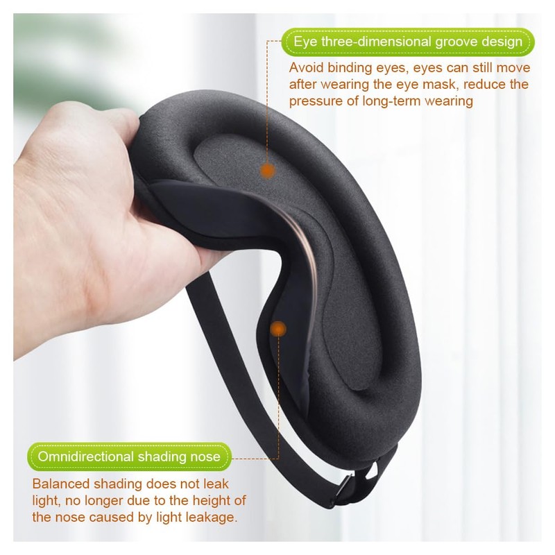 - No Eye Pressure - 3D memory foam cups and extra padded nose design contour to your face effectively blocking outside light from all angles.