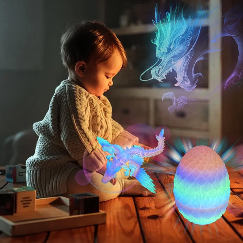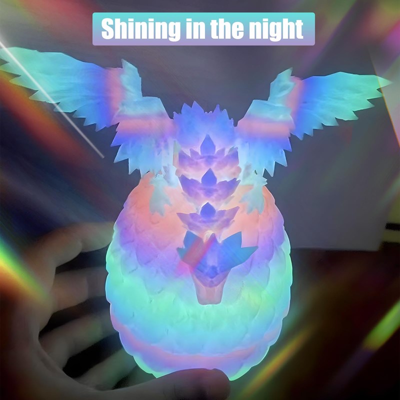 - 【Glow-in-the-Dark Rainbow Effect】 This 3D printed dragon in egg is more than just a decoration—it transforms from a sleek white display piece by day into a mesmerizing rainbow glow at night. The luminous effect adds a magical ambiance to bedrooms, offices, or living spaces, making it a versatile decor choice