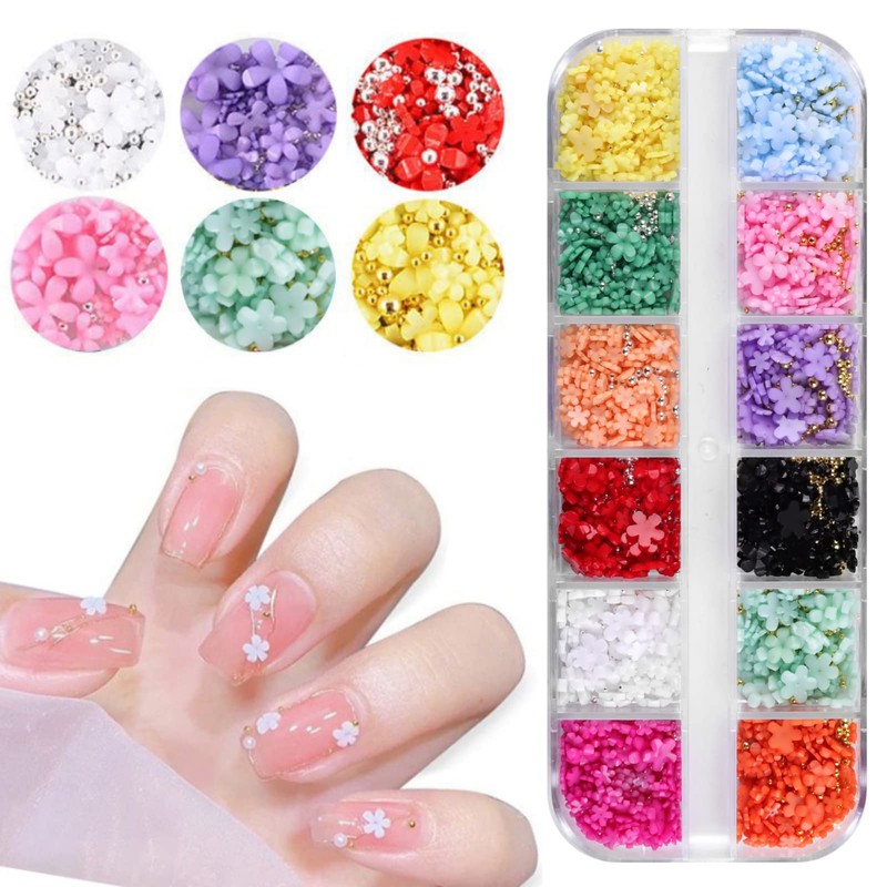 - 【WHAT YOU GET】You will get 12 grids colorful 3D flower nail art charms with gold sliver bead. Sufficient quantity and styles allow you to freely DIY your unique nail art.