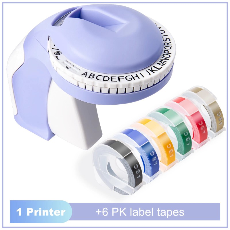 3D Embossing Label Maker with 6 Color Label Tapes 3/8" for Dymo Omega Xpress