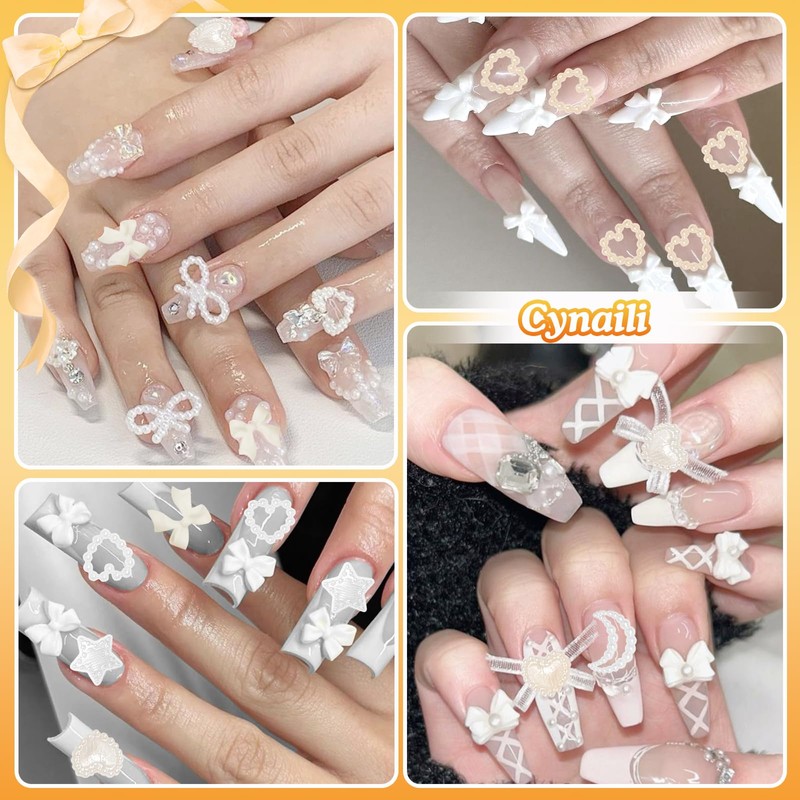 - Mix Styles 3D Nail Chams: Different shapes of nail art pearl including flatback solid and hollow hearts, bows, stars charms for resin crafts, small flower hollow moon nail pearls and mix size half round pearls and rhinestones