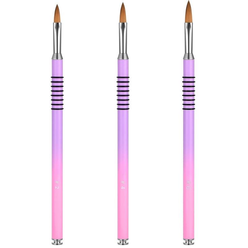 3D Flower Brush for Acrylic Nails, Professional Kolinsky Brush Set 3Pcs, Sizes 2/4/5 with Non-Slip Gradient Handle, Nail Art Tool for 3D Designs (Purple-Pink)